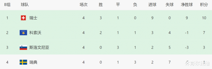 本场过后,瑞典队前4轮世预赛1平3负0胜,仅仅拿到1分,目前继续在小组垫底。截至目前,瑞典队落后榜首的瑞士队9分,在只剩下2轮比赛的情况下,瑞典队提前无缘小组头名。事实上,瑞典队竞争小组第二也希望渺茫,他们落后科索沃6分之多,而且净胜球还少4个,以瑞典队的状态,相信下一轮踢完,他们就将提前无缘小组第二。